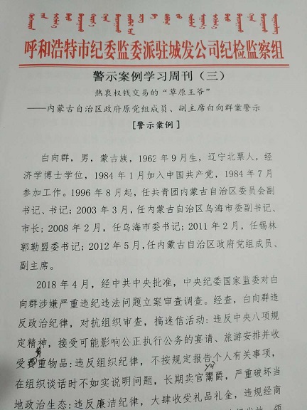 《條例》學(xué)習(xí)結(jié)束后,呂振平同志帶領(lǐng)大家集中學(xué)習(xí)了警示案例學(xué)習(xí)周刊三——內(nèi)蒙古自治區(qū)政府原黨組成員、副主席白向群案警示。