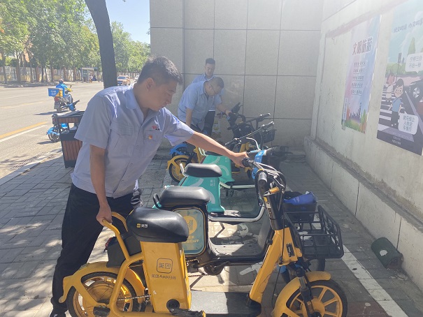 上午9點,黨員們來到學(xué)苑東街與展覽館東路的共享單車停放區(qū)域,對共享單車亂停亂放現(xiàn)象進行了集中整理,以防止公共交通路段出現(xiàn)擁堵現(xiàn)象,并對現(xiàn)場發(fā)現(xiàn)的不文明停車行為進行了勸導(dǎo),并向市民宣傳文明出行、規(guī)范停車等內(nèi)容,收到了良好的社會效果。